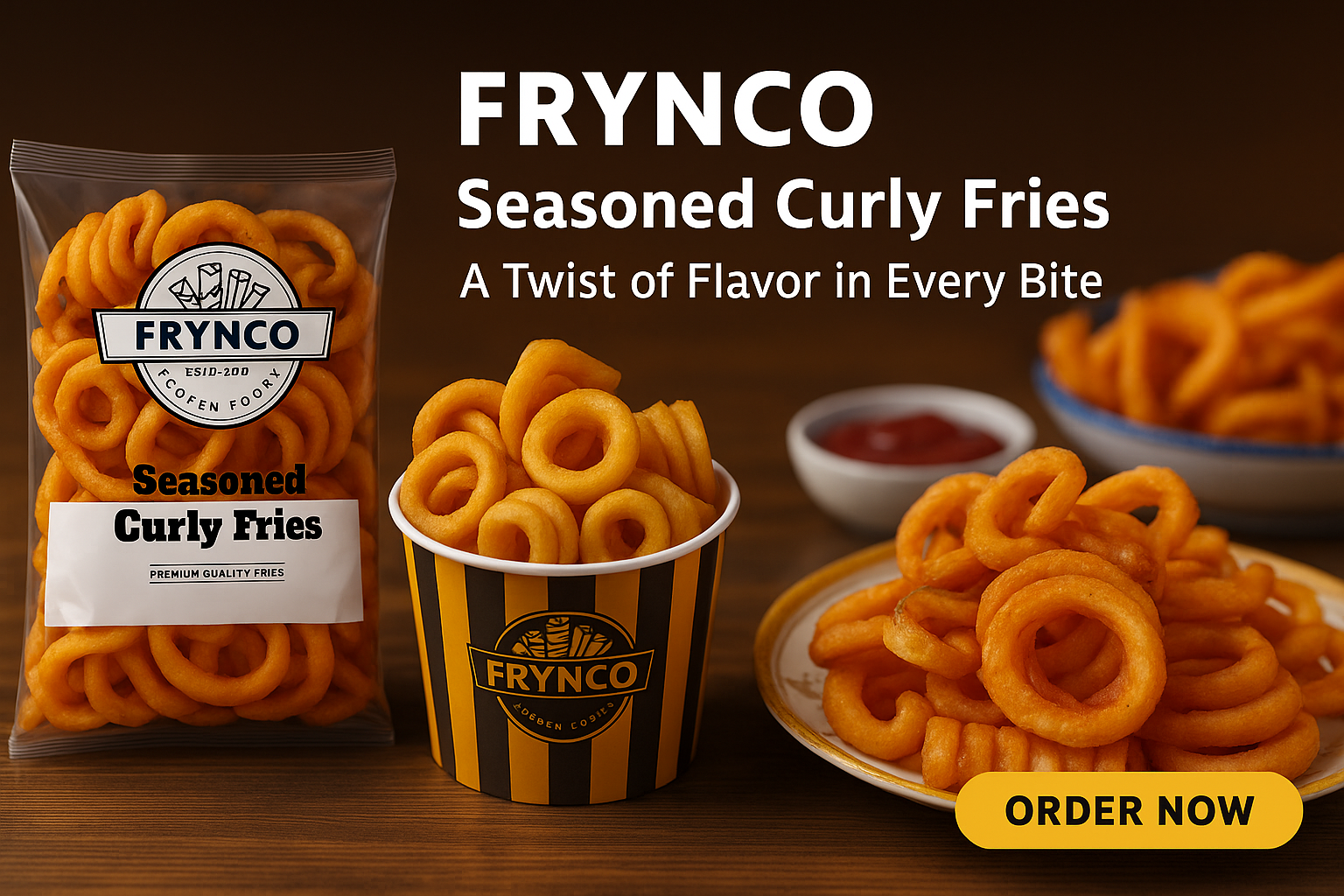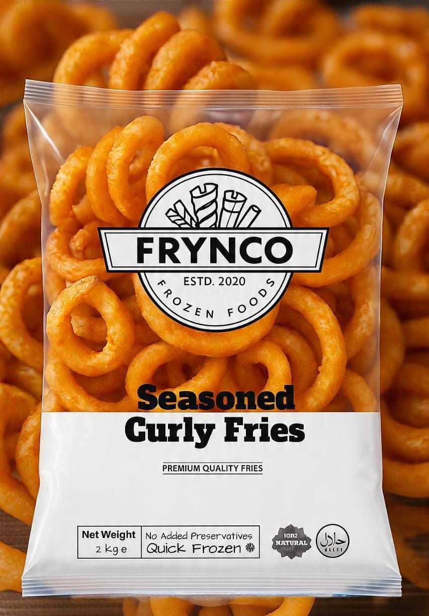 FRYNCO Seasoned Curly Fries — A Twist of Flavor in Every Bite.